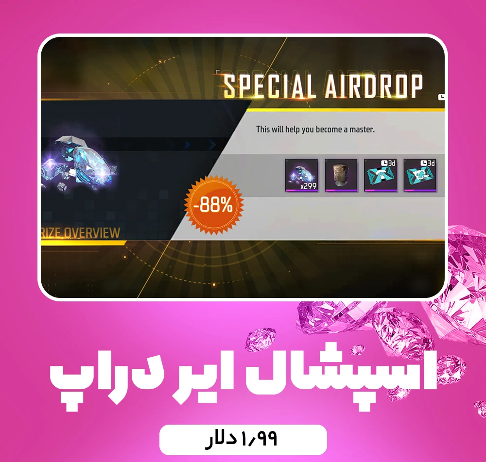 بسته ۱۰۰ جم (الماس) فری فایر (Free Fire) با اطلاعات